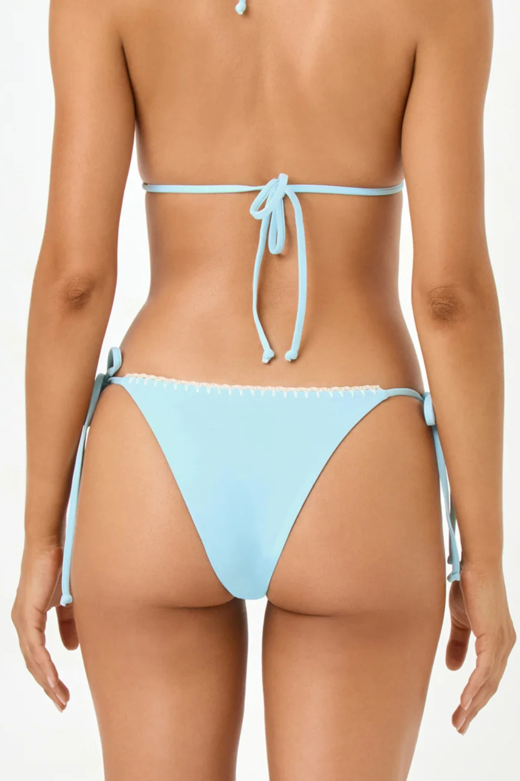 Bitsy baby blue bikini bottoms with white ruffled trim.