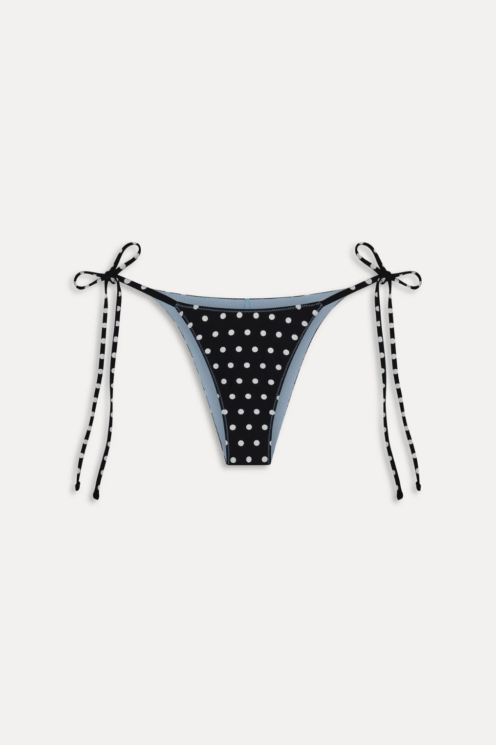 Reversible baby blue to black with white polka dot string bikini bottoms.