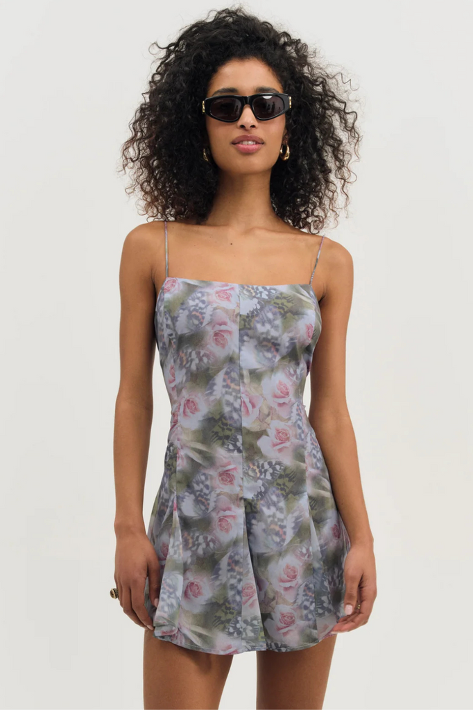 Floral chiffon print mini dress.