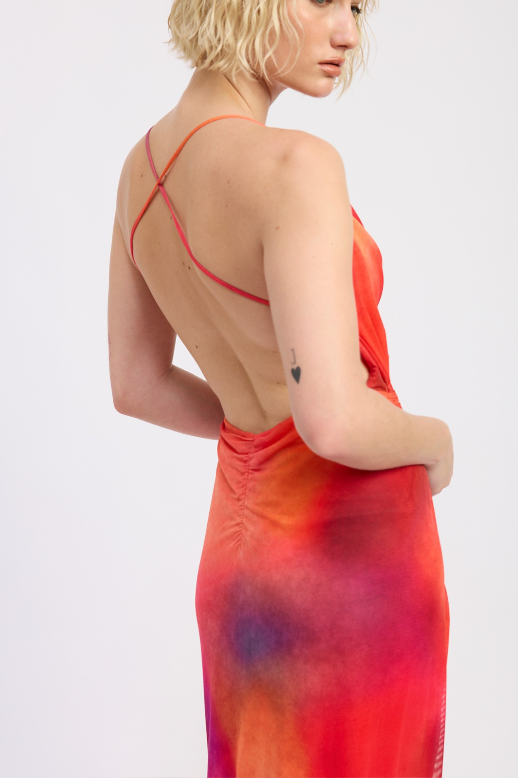 Mesh midi dress with side ring cut out.