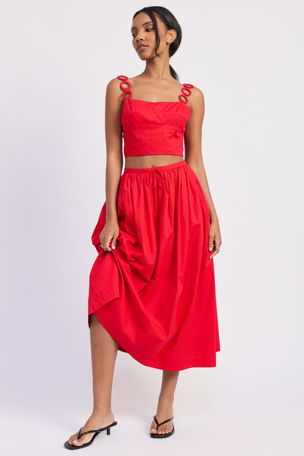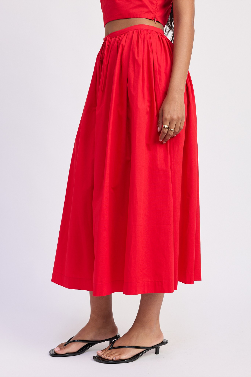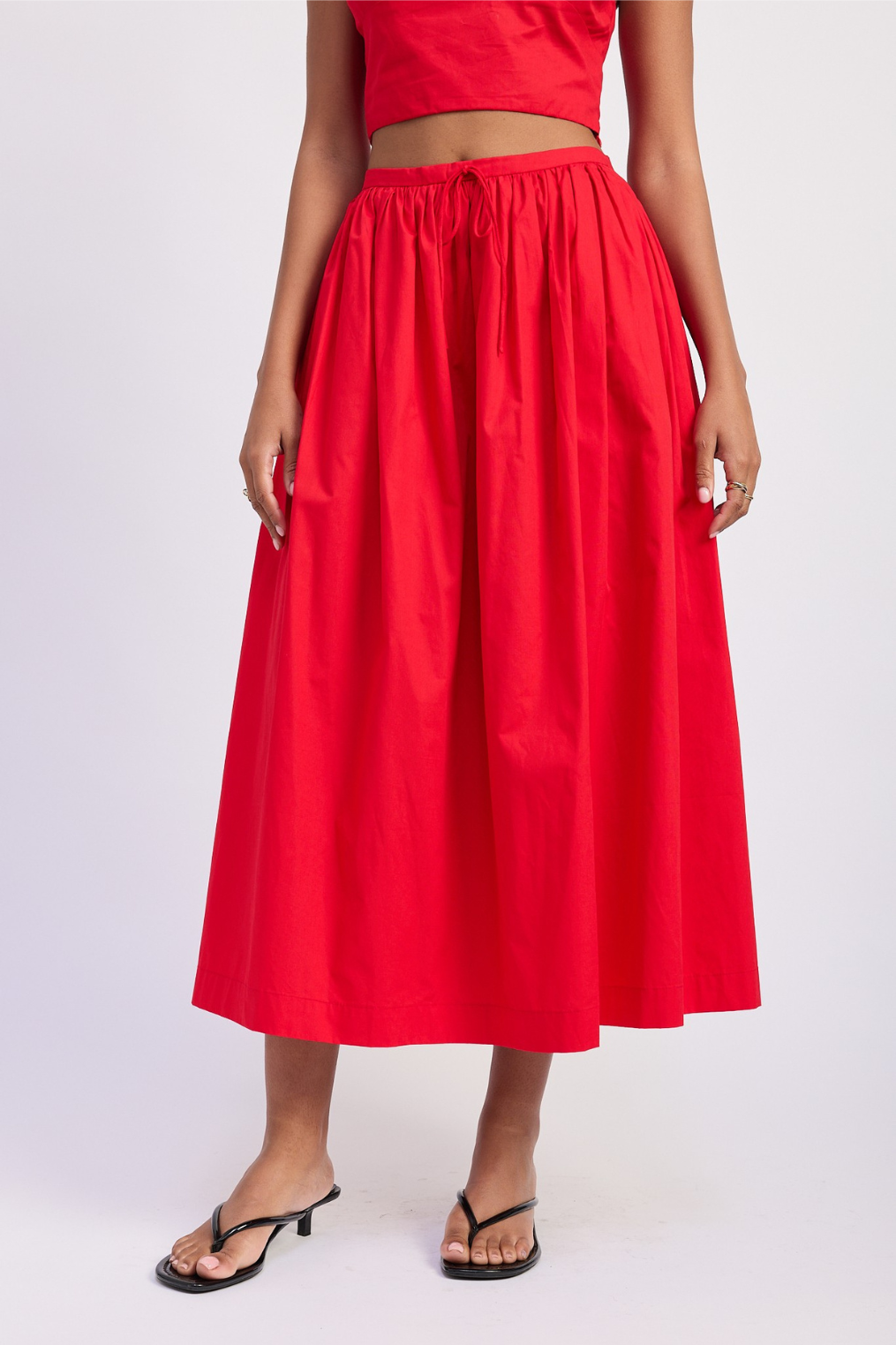 Cherry red midi skirt.