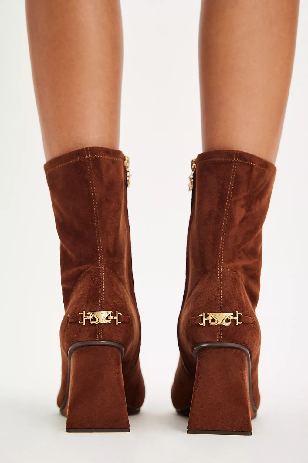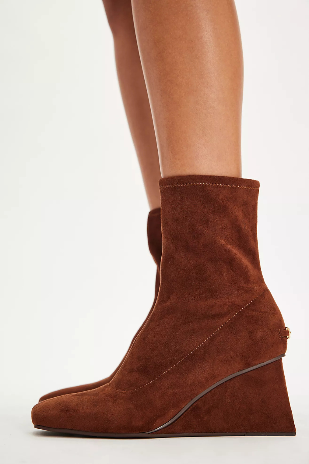 Faux suede brown wedge booties.