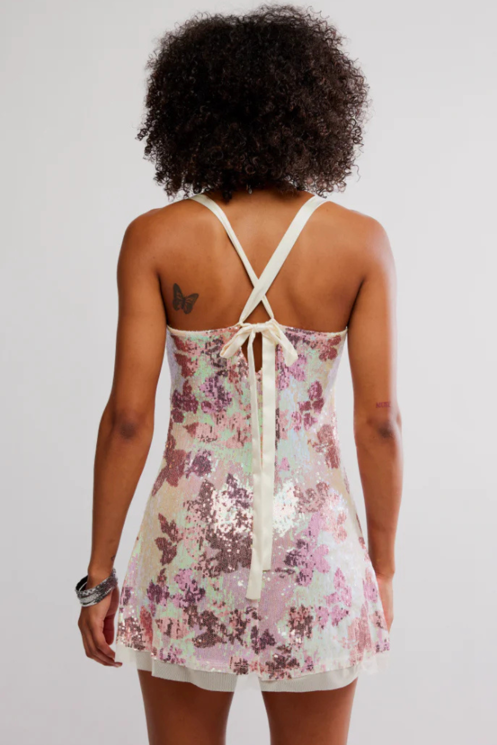 Shimmery mini slip with a jacquard sequin design.