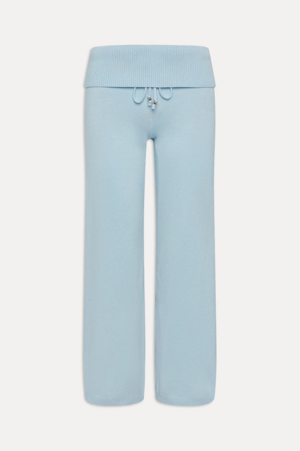 Cozy baby blue knit pants made in Frankie's signature Cloud Knit Fabric.