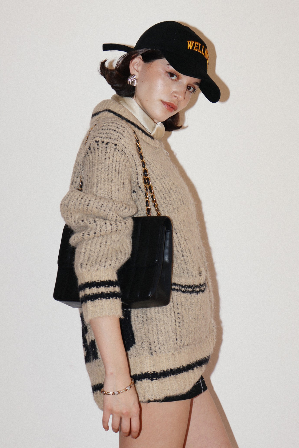 - Striped hem and cuff accents