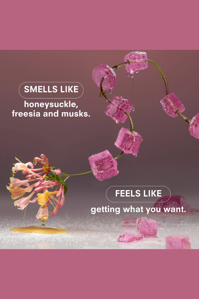 A sweet floral scent with honeysuckle, freesia, and sugary musk.