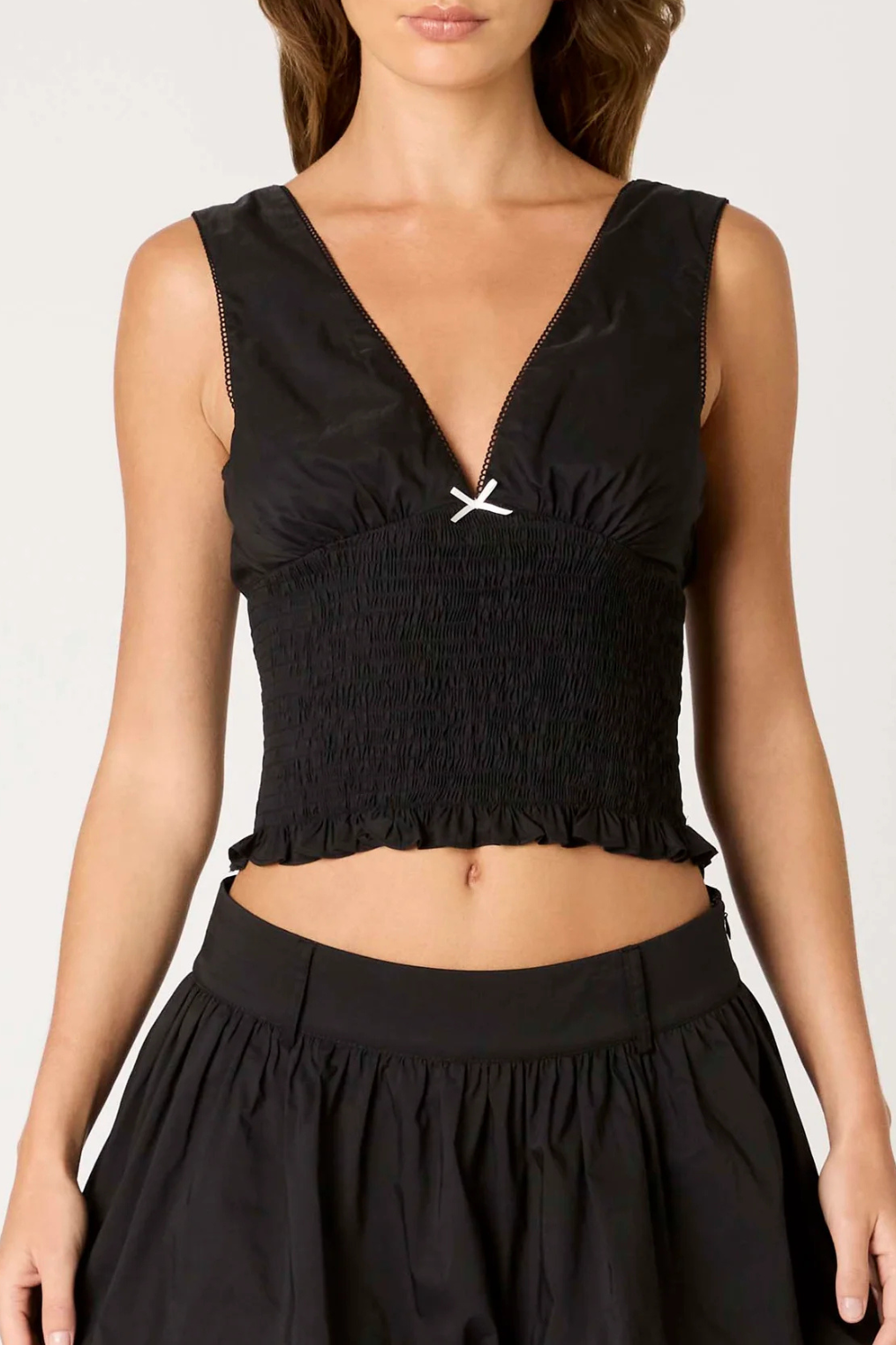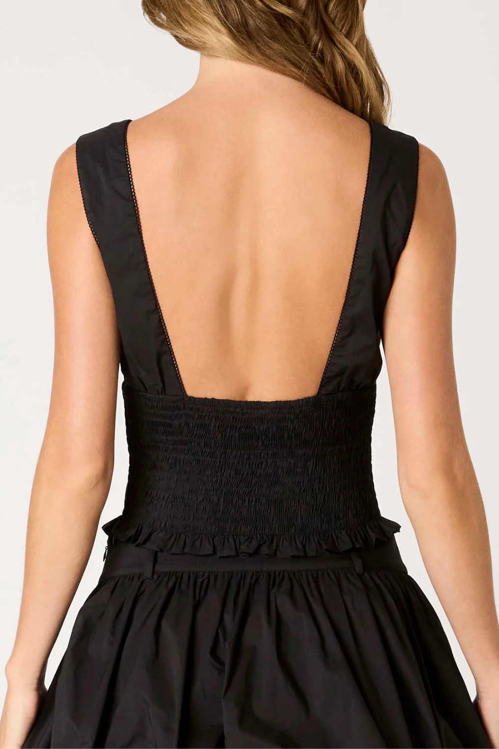 Smocked v-neck bodice top.