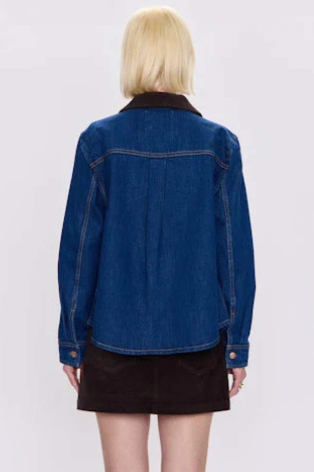 • Contrast brown corduroy collar