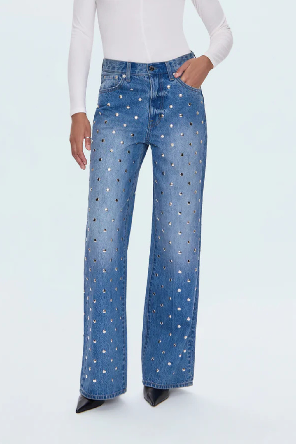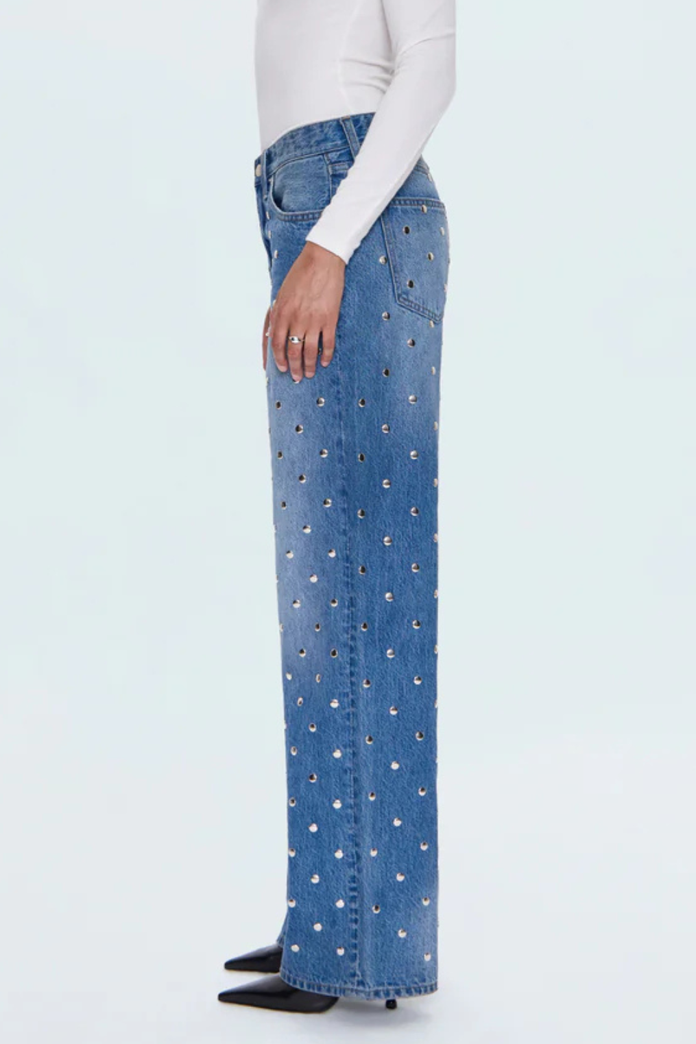 High rise baggy jeans studded from waist to toe.