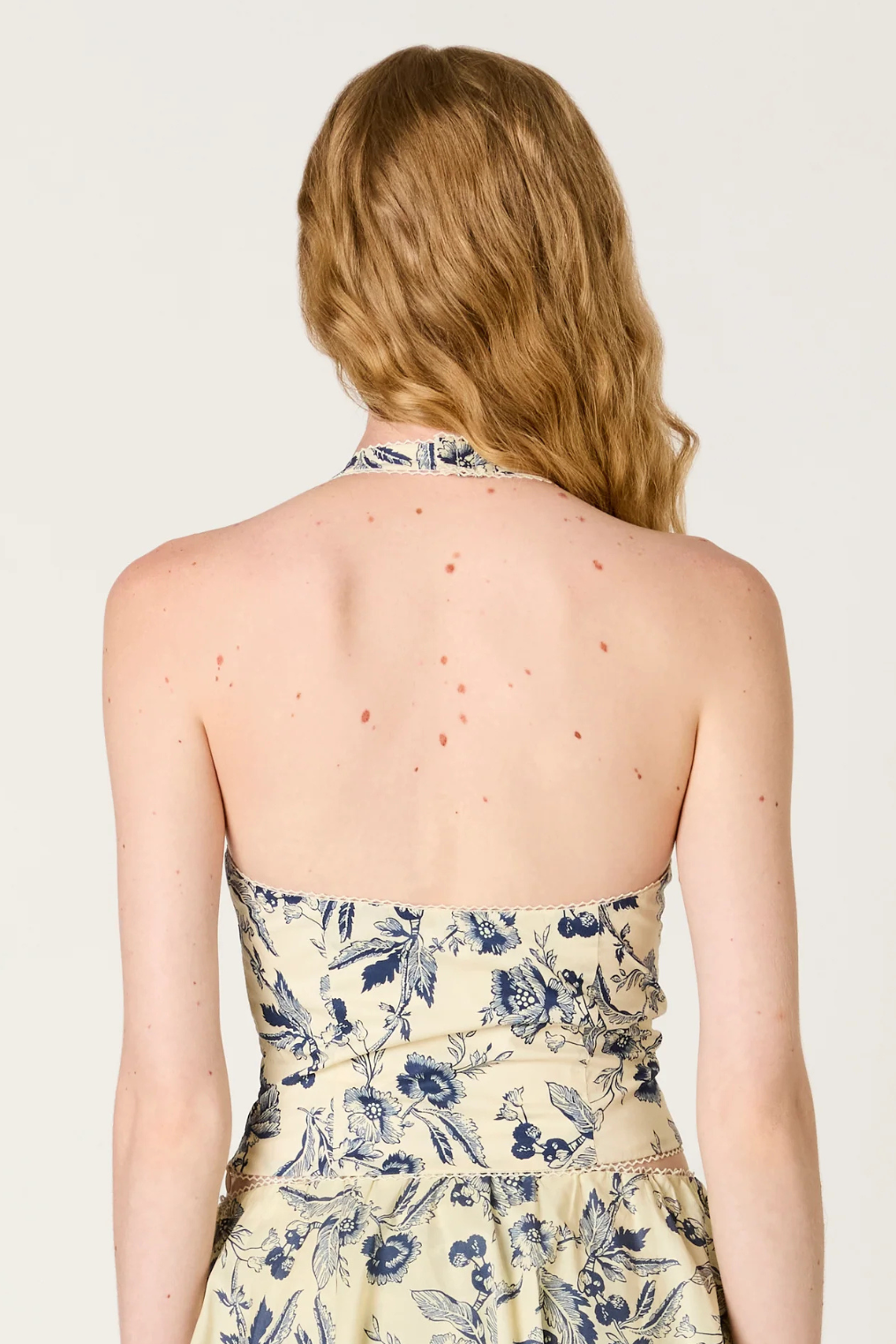 - Fitted halter-style silhouette