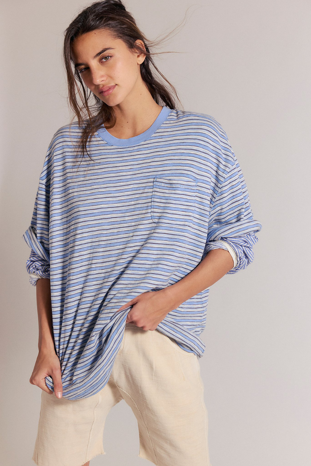 A soft cotton oversized staple tee with ringer neckline.