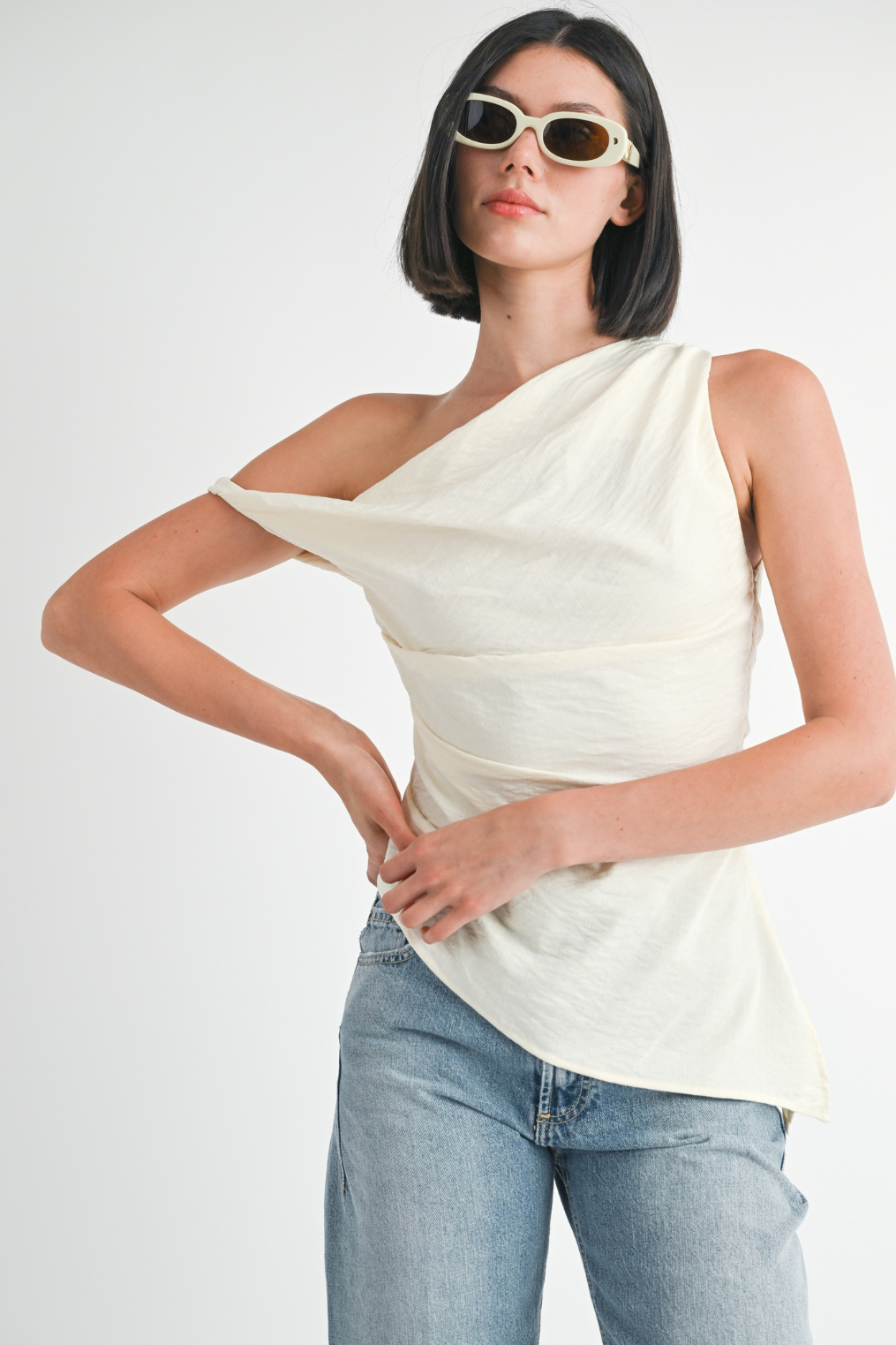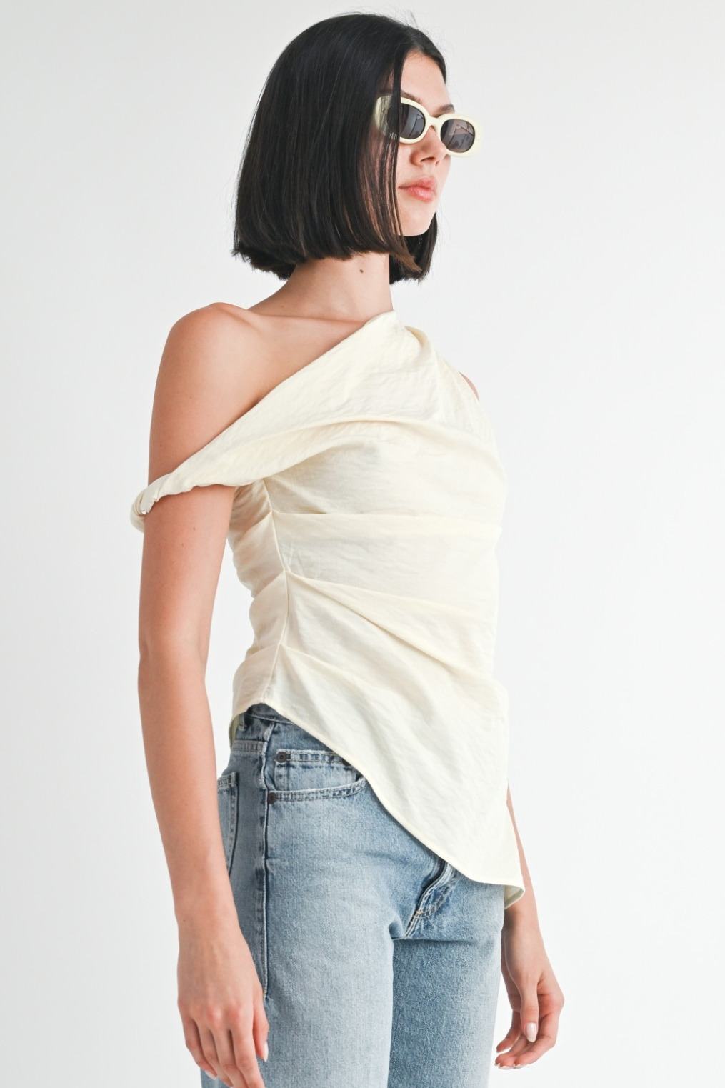 Asymmetrical shoulder tunic top.