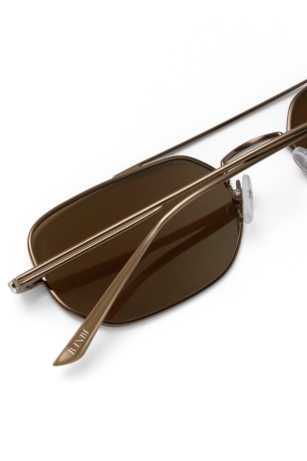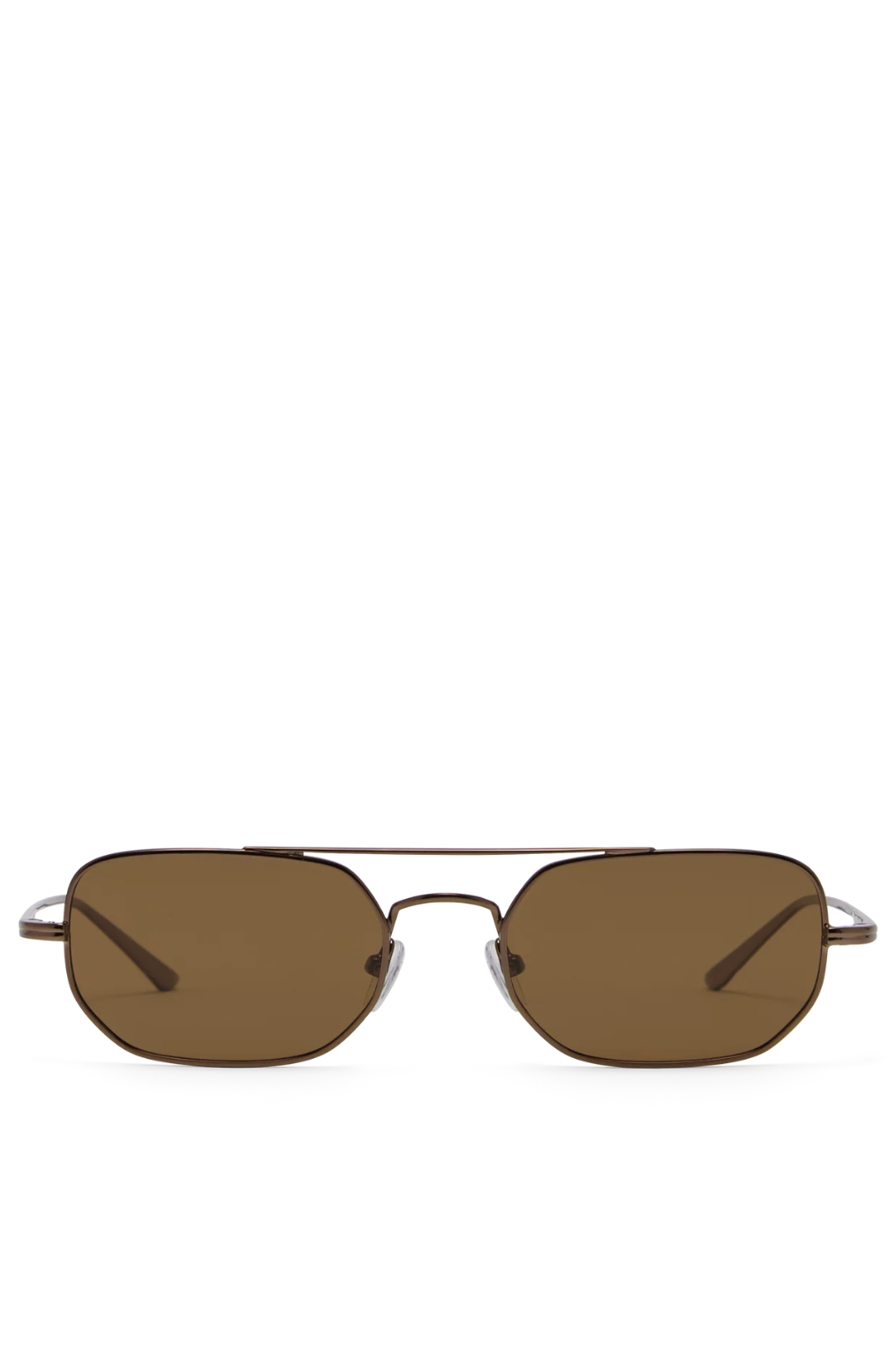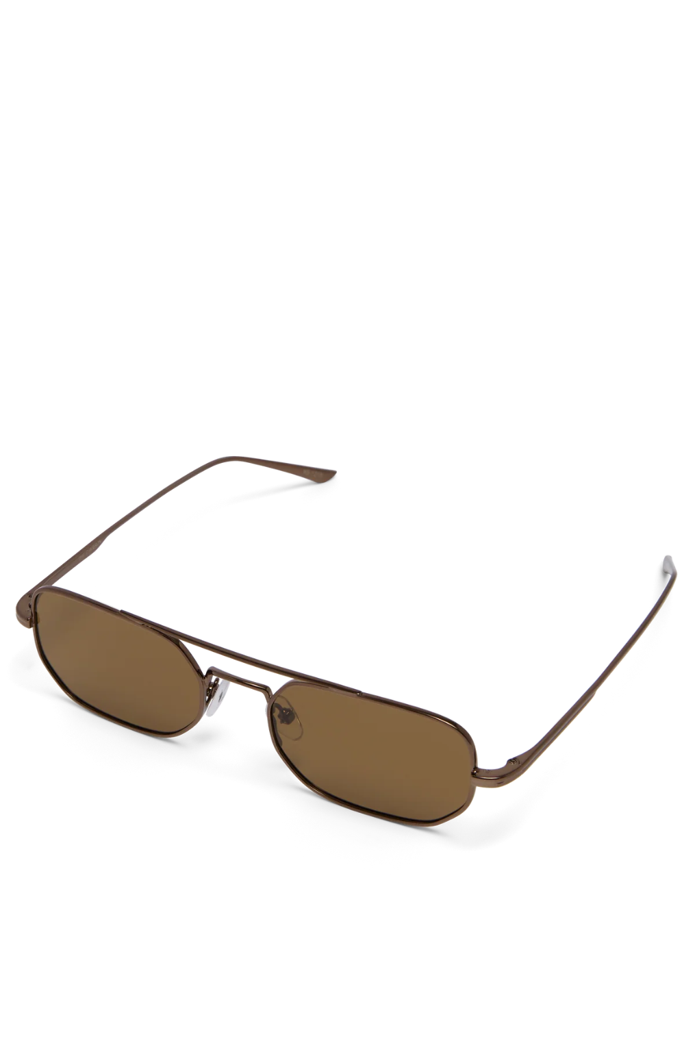Soft angled aviator sunglasses with chocolate-toned metal frame.