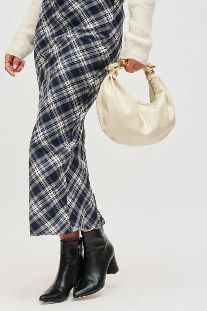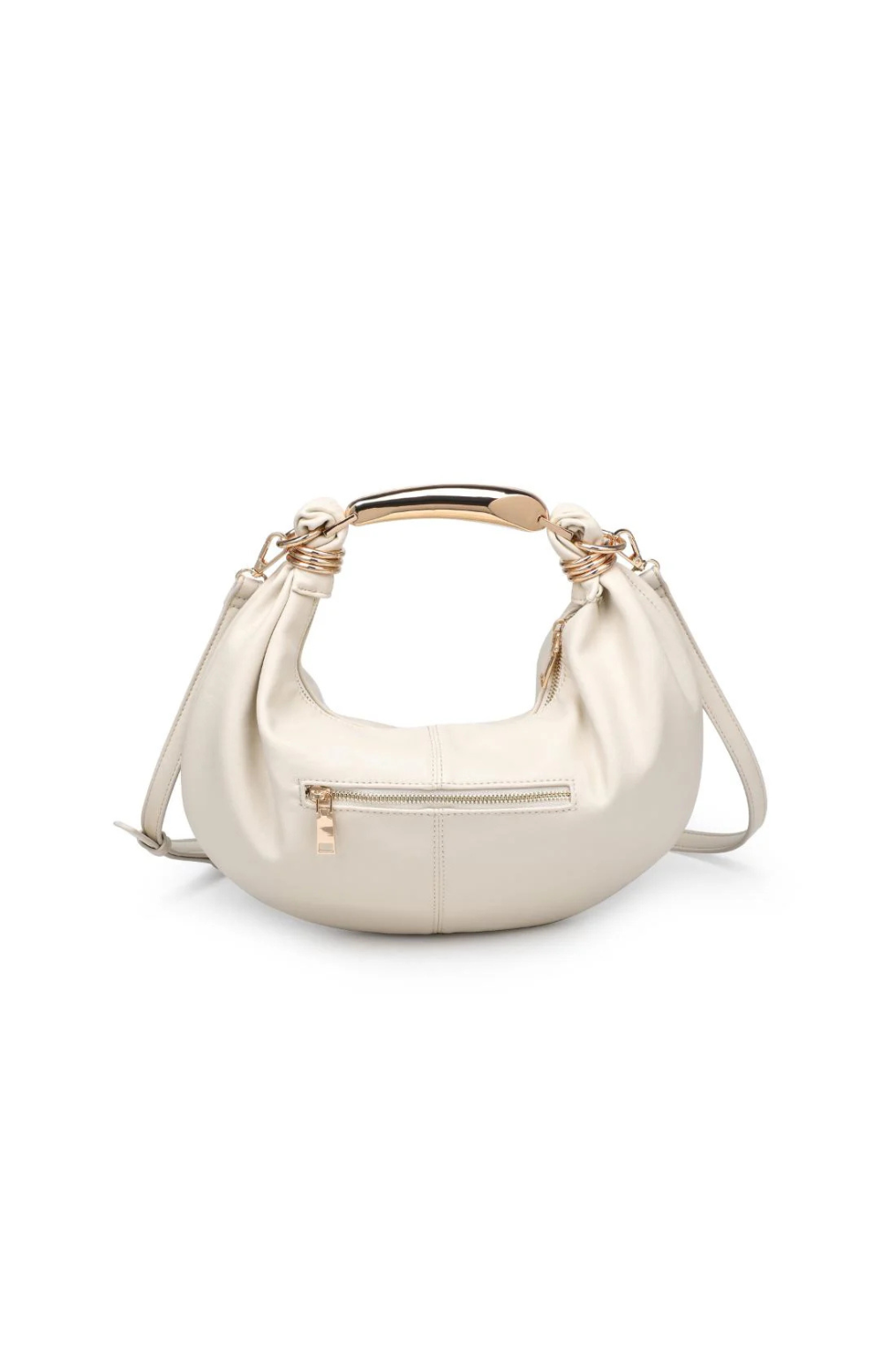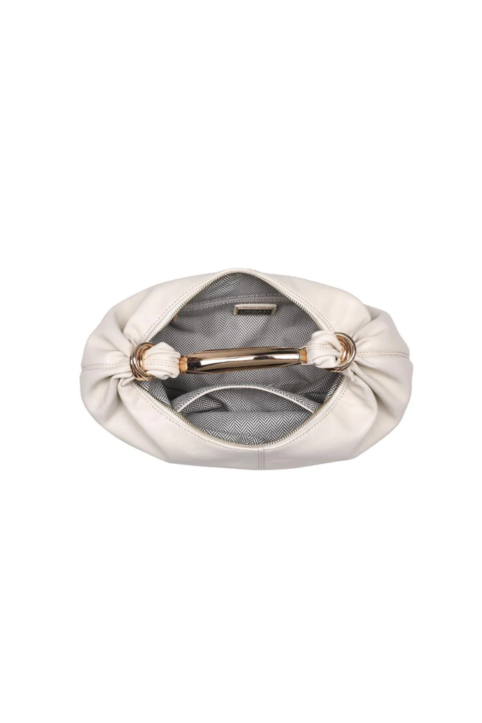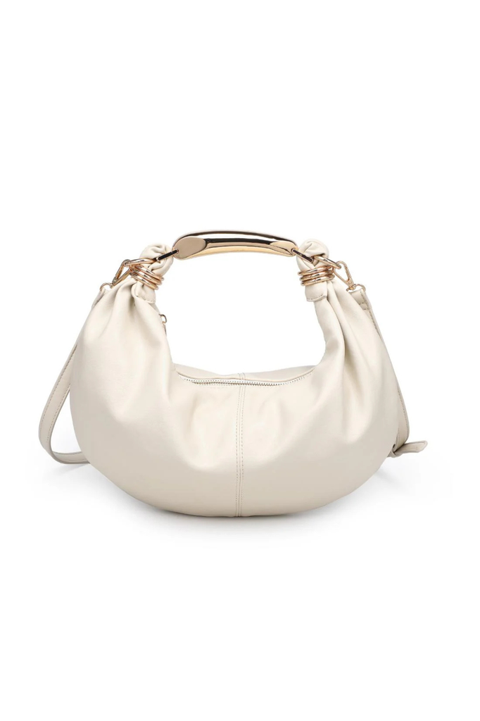 Creamy off-white soft-silhouetted vegan leather crossbody bag.
