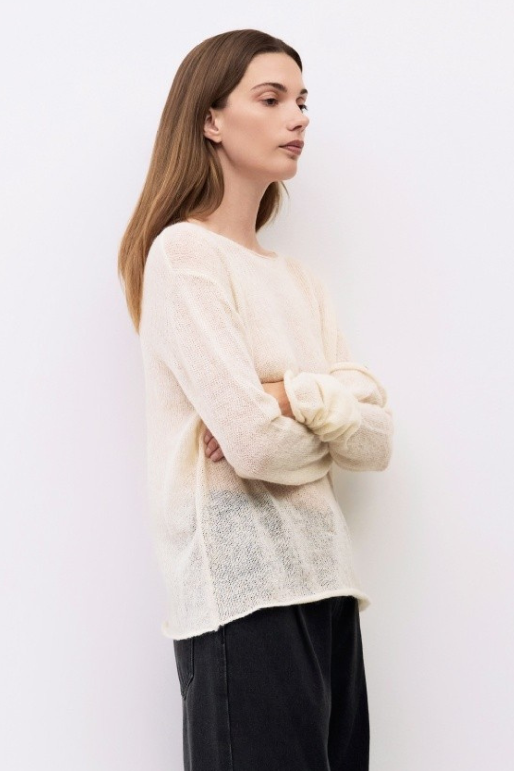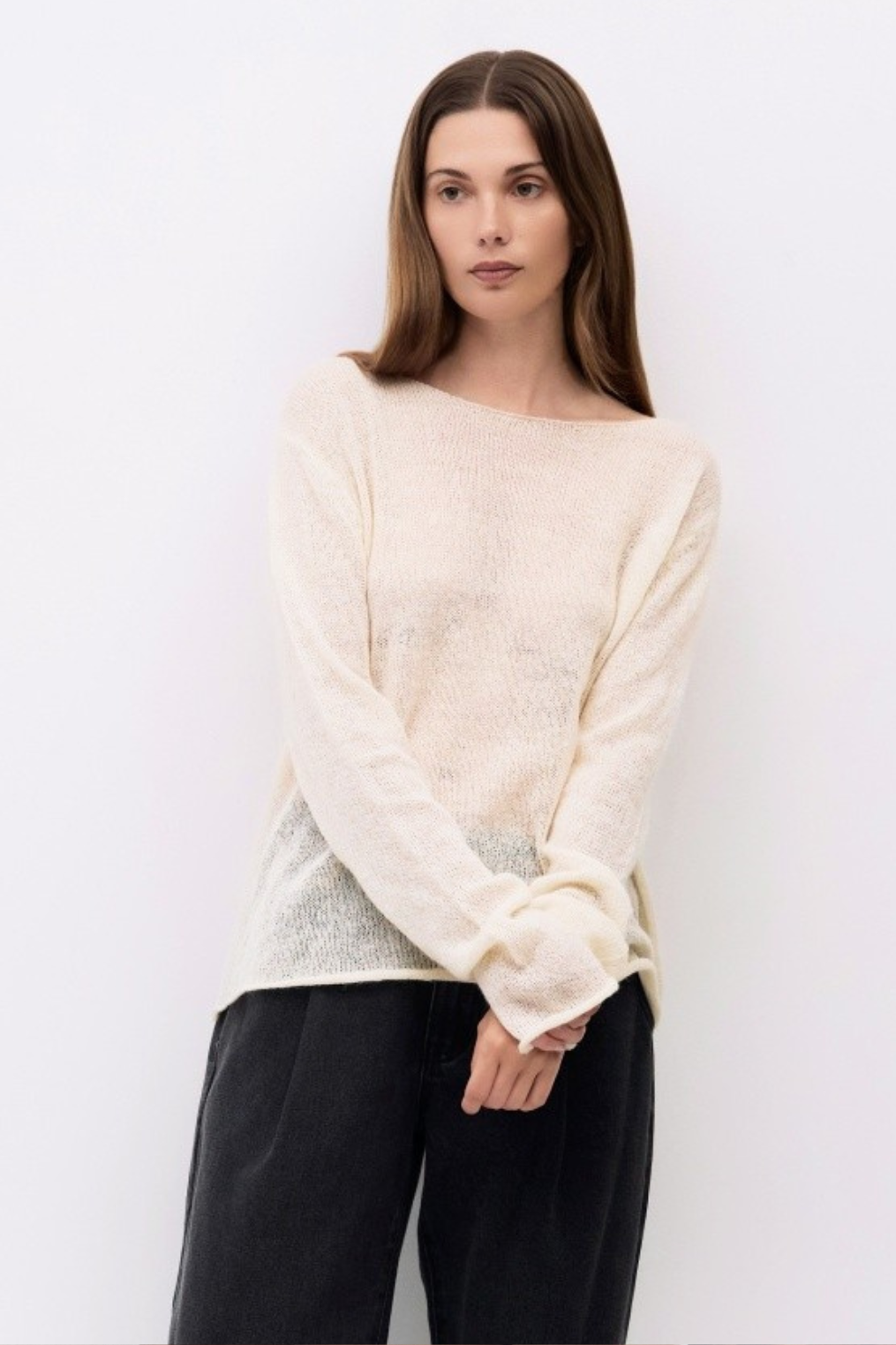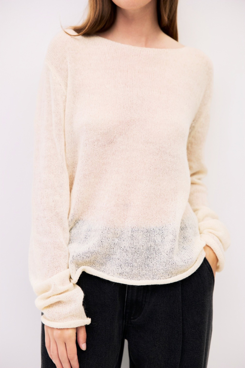 Relaxed fit lightweight and open-knit mesh sweater top.