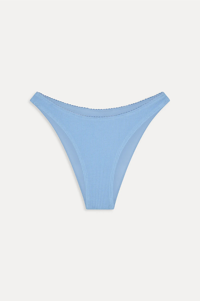 Go-to low-rise bikini bottom made in a blue thermal swim fabric.