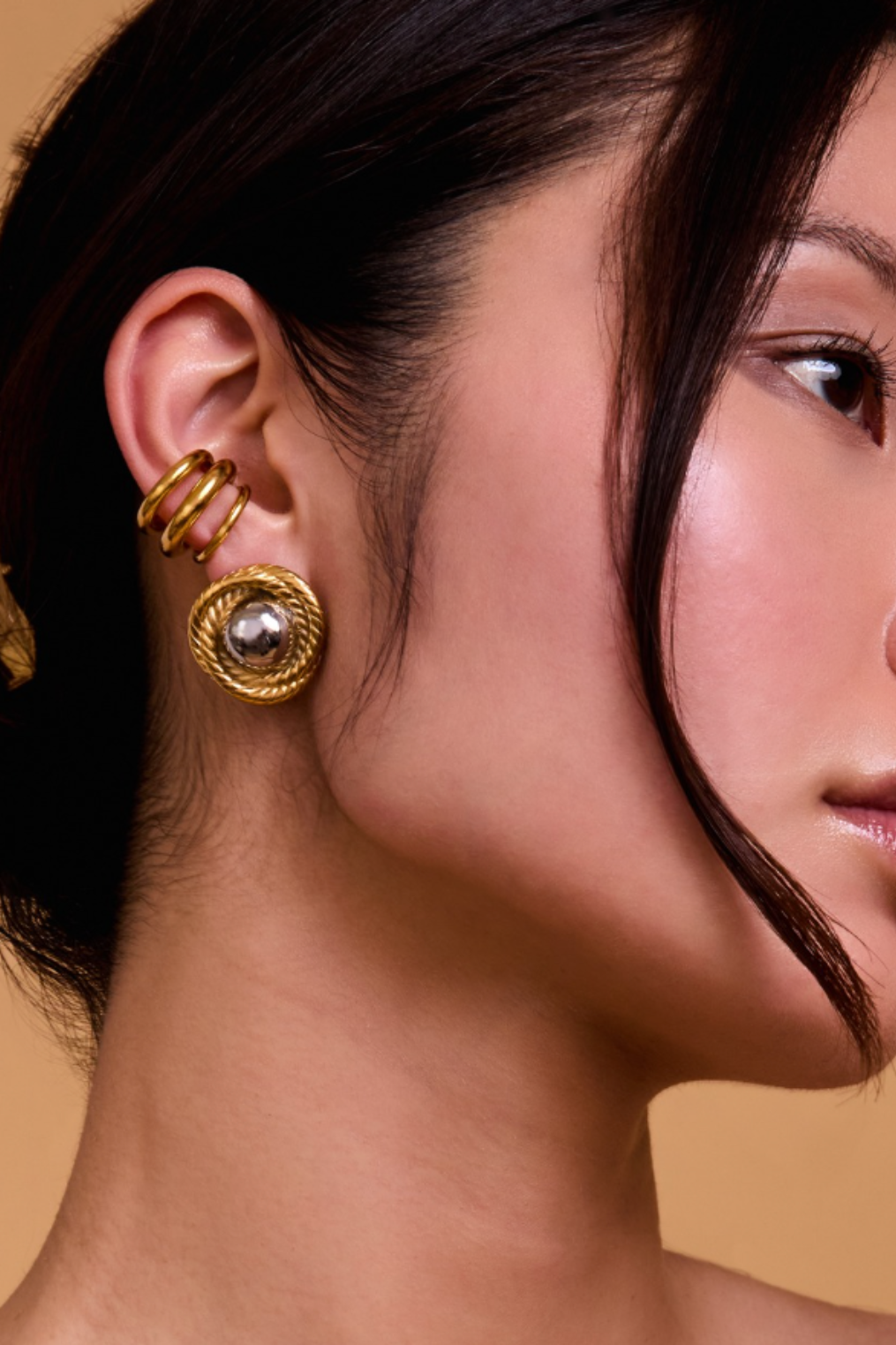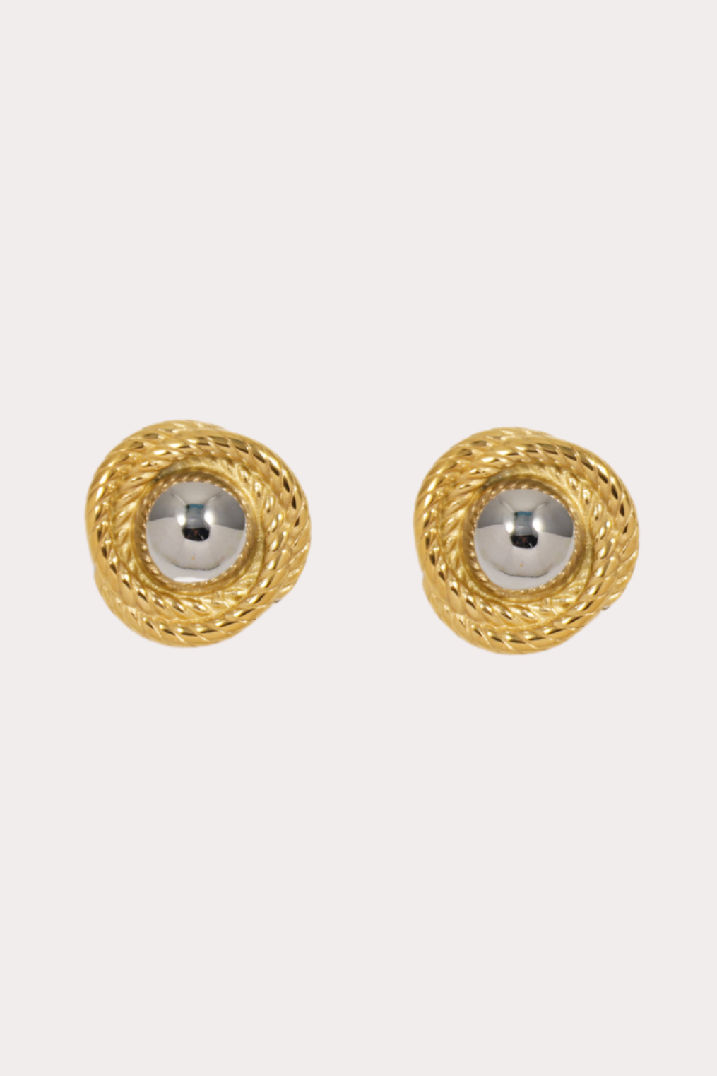 Gold and silver two-tone oversized stud earrings.