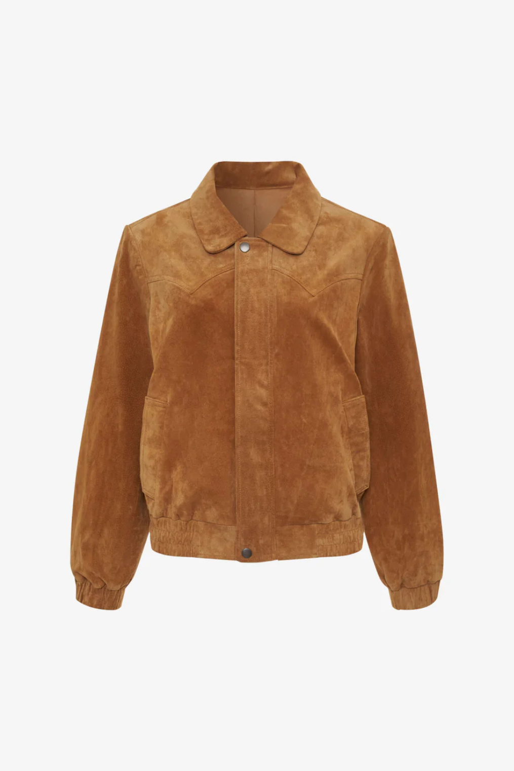 Genuine suede collared bomber jacket with a subtle western edge in a classic silhouette.