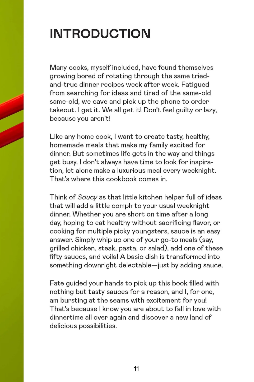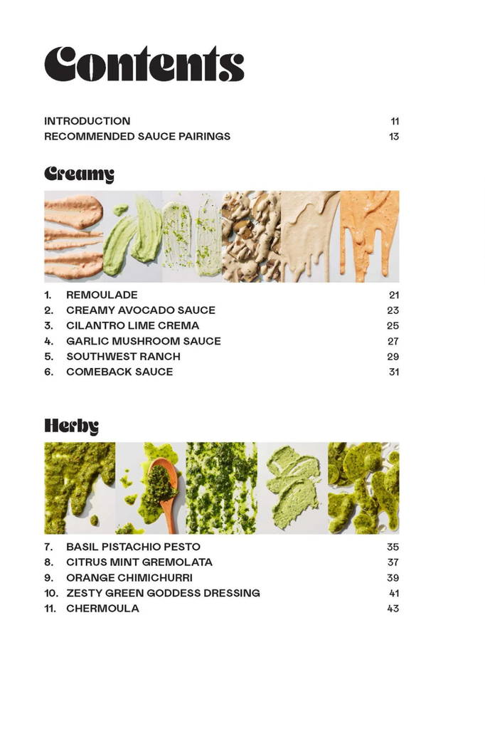 Saucy is an accessible collection of 50 sauce recipes organized by flavor profile (herby, sweet, spicy, savory, and more). This go-to kitchen companion, irresistibly designed with bold graphics and full-color photography, includes simple, super-tasty sauces that transform basics from ordinary to sensational