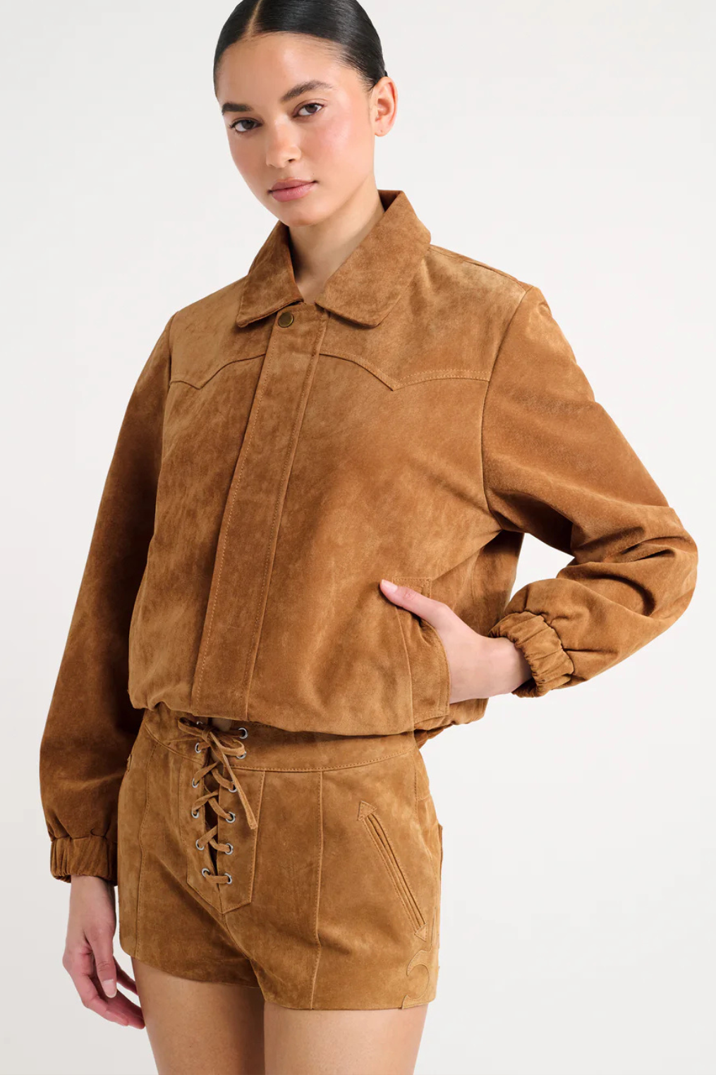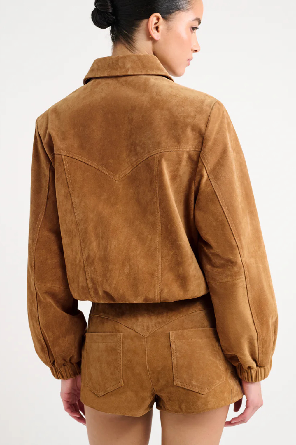 Genuine tan suede micro shorts.